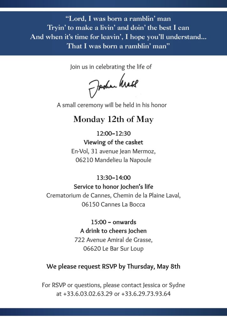 Jochen Mass verstarb am 4. Mai 2025 im Alter von 78 Jahren im französischen Cannes.